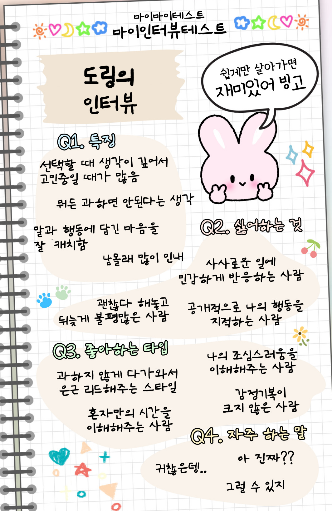 마이인터뷰테스트는 최근 많은 사람들 사이에서 인기를 끌고 있는 성격 유형 검사 중 하나입니다. 기존의 MBTI와 비슷하면서도, 그 방식이나 질문이 매우 독특하여 많은 이들이 흥미를 느끼게 됩니다. 이 테스트는 자신에 대해 좀 더 깊이 이해하고, 다른 사람들과의 소통에서 더 나은 결과를 얻고자 하는 이들에게 적합합니다.