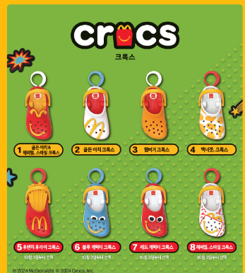 크록스 키링은 총 4종으로 출시되었습니다. 10월 03일부터는 8종으로 선택할 수 있게 되었습니다. 각각의 디자인은 크록스의 상징적인 요소를 잘 살리고 있으며, 귀여운 캐릭터들이 특징입니다. 키링은 크록스 신발에 부착할 수 있도록 제작되어 있어, 실용성과 장식성을 동시에 갖추고 있습니다.