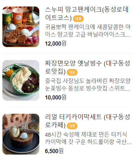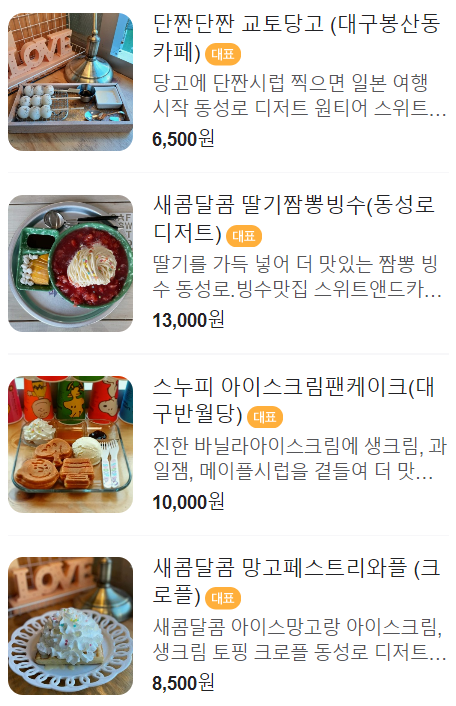 생생정보 동성로카페 스위트앤드 메뉴, 가격