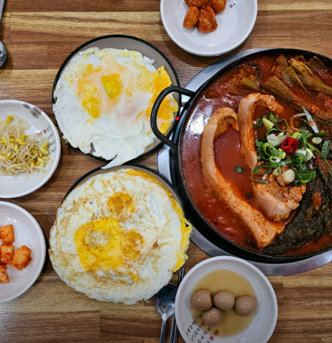 특징: 여수특산물 돌산갓김치로 끓인 비벼먹는 갓돈찌개집입니다. 계란후라이를 무제한 셀프이용가능하고 매운 배추김치는 윤심이네별미 못 먹게 매운맛 아니고 정말 맛있게 매운 김치입니다.