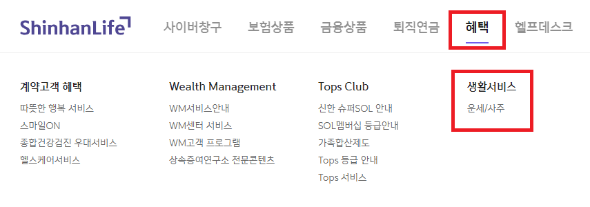 신한은행 무료 토정비결, 사주, 운세 이용방법