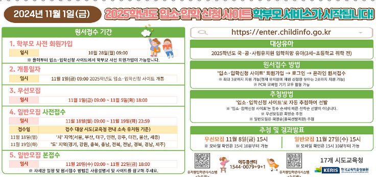 - 간편한 통합 신청: 한 번의 회원가입으로 어린이집 입소대기와 유치원 입학을 동시에 신청 가능