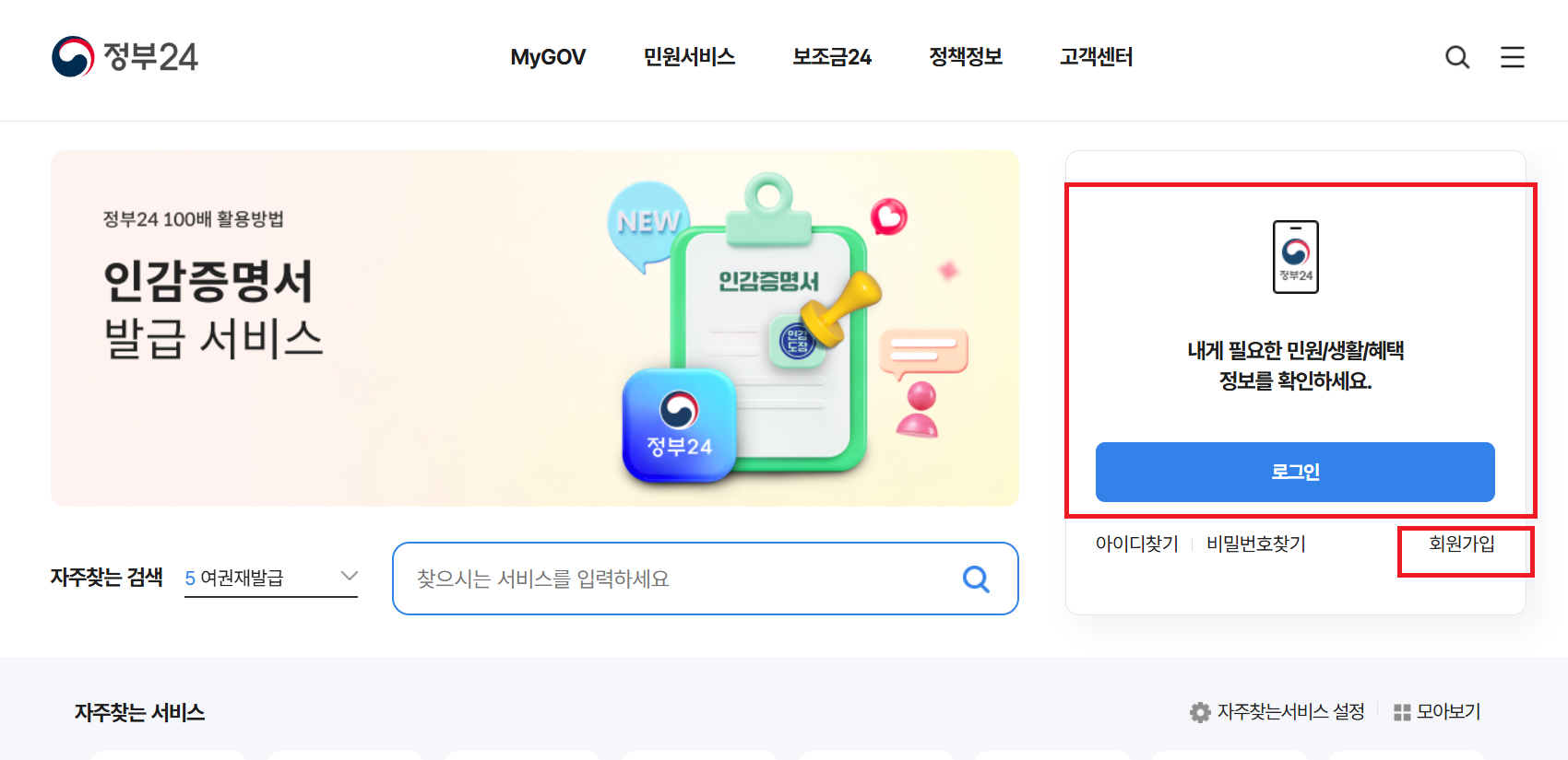 ① 정부 24 웹사이트 접속 및 로그인