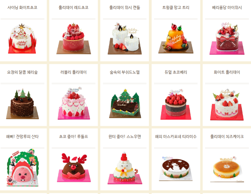 - 매년 테마에 맞춘 다양한 디자인의 크리스마스 케이크 출시