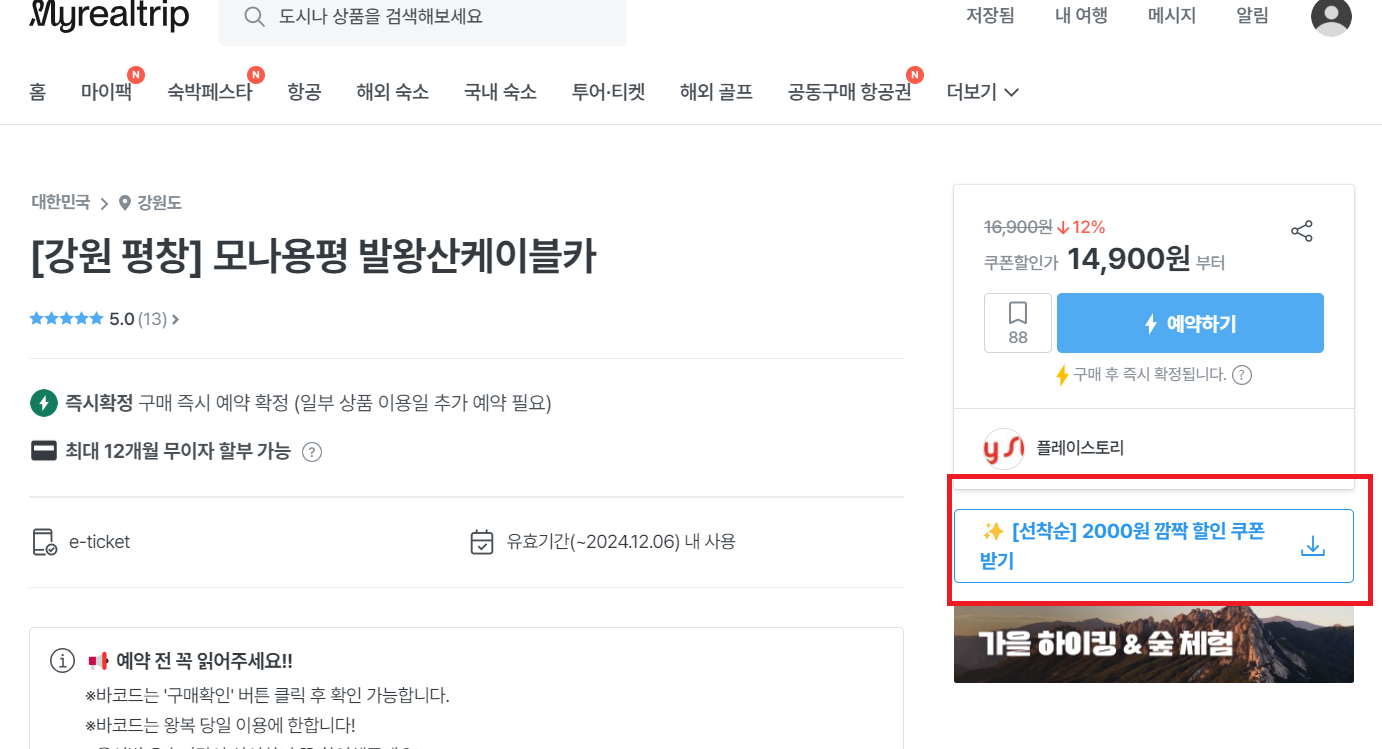 발왕산 케이블카 할인받기