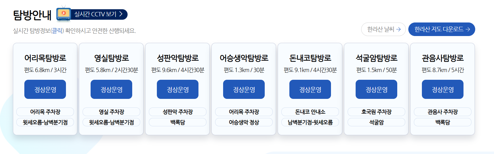 - 통제 상황은 한라산 탐방 예약 시스템 홈페이지를 통해 실시간으로 확인할 수 있습니다.