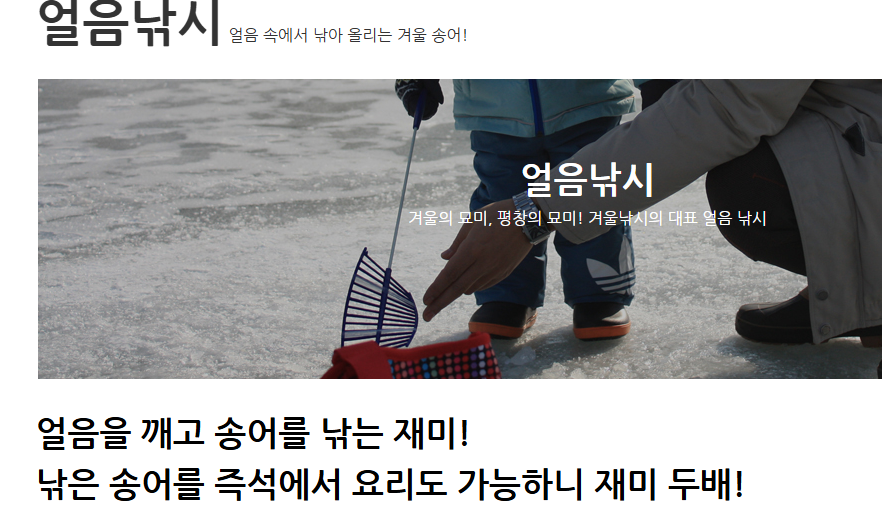 - 산천어 얼음낚시, 맨손 잡기, 밤낚시