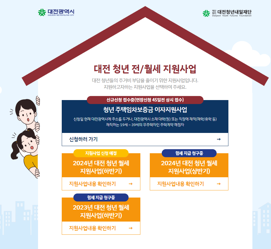 √ 지원대상: 신청일 기준 대전시 거주, 19세 ~ 39세의 무주택 청년 가구