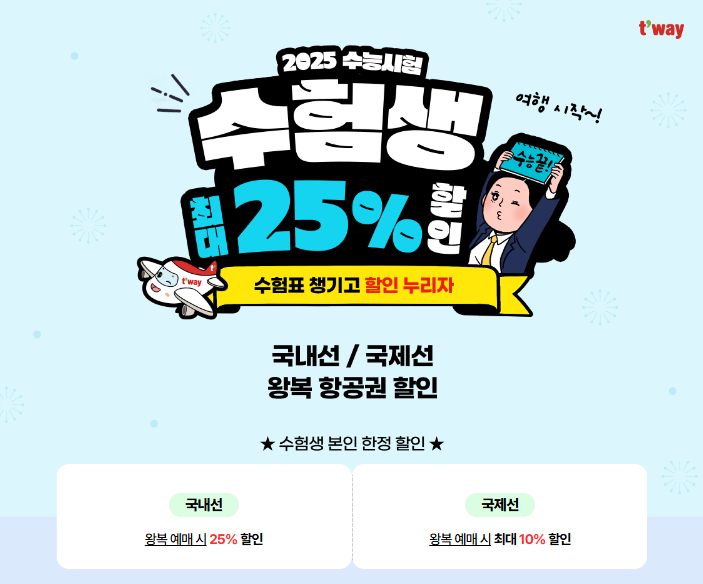 티웨이항공 2025 수험생 할인 프로모션 혜택